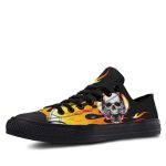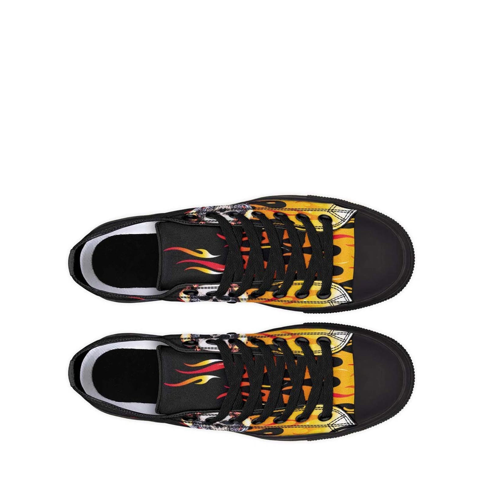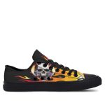 Embrace your rebellious side with the Skull on Fire Lowtop Sneakers—a bold and edgy footwear choice designed for those who dare to stand out. Featuring a striking skull graphic surrounded by intense flames, these sneakers are the perfect combination of attitude and style. The canvas upper provides a lightweight and comfortable fit, while the durable rubber sole offers superior traction and long-lasting wear. Whether you’re looking to elevate your casual look or make a daring statement, these sneakers are perfect for adding that extra flair to any outfit.