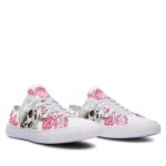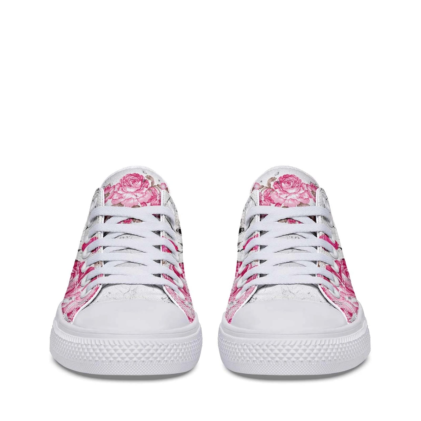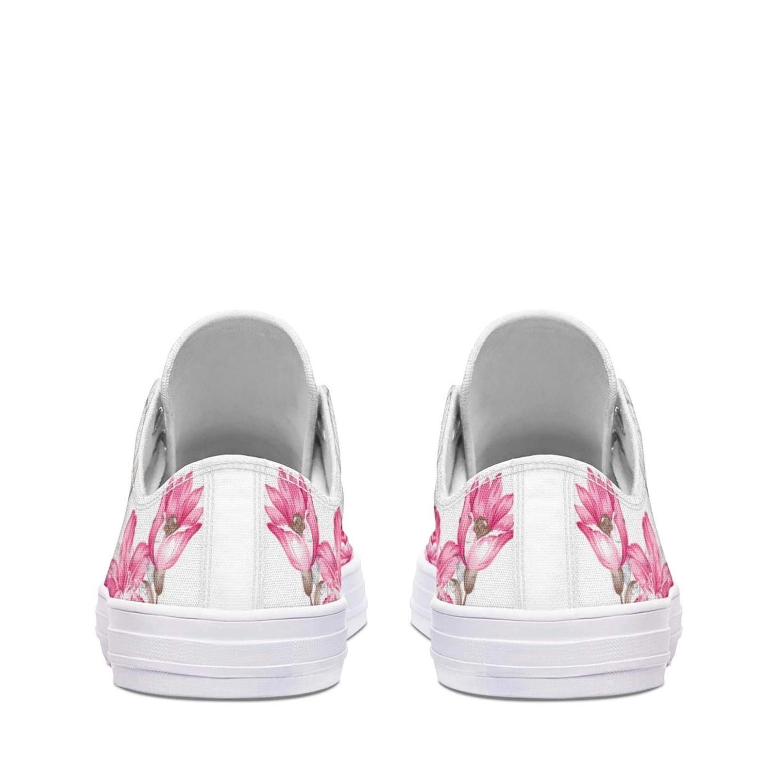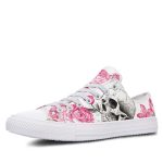 Whether you’re exploring the city, meeting friends for coffee, or adding a playful twist to your casual office attire, the Skull with Pink Flower Pattern White Lowtop Sneakers are designed to elevate your style and add a unique statement to any outfit.