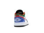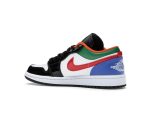 Further details include a black nylon tongue featuring a Jumpman insignia, and a red “23” branding on the lace cover. This attention to detail elevates the sneaker beyond a simple shoe, making it a statement piece that reflects both style and heritage. The comfortable fit and superior construction ensure that these shoes are as functional as they are fashionable. Originally released on October 1, 2020, the Jordan 1 Low Multi-Color Black Toe continues to be a sought-after collectible and a stylish choice for sneaker enthusiasts.