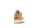 The Jordan 1 Low SE Twine Orange Quartz Corduroy (W) features a combination of corduroy, suede, and leather for a premium feel. The color scheme, with its earthy tones of twine, orange, and orange quartz, makes them a versatile addition to any outfit. Find your perfect fit and experience the exceptional quality and style of these iconic Jordan sneakers. These are the perfect blend of comfort and style for the modern woman.
